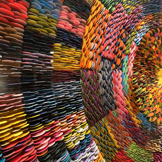 Ganesh Selvaraj is a prominent artist-thinker from Chennai, known for his introspective approach and distinctive abstraction. A pioneer in the city’s emerging new school of art, Selvaraj has developed a unique voice, rooted in innovative techniques and a deep exploration of identity, existence, and the human experience....Does your brain see what the eyes see? When you "see", is it because it is, or because it should be? In an age of overwhelming information and stimuli, the brain instinctively strives to find meaning, attempting to define every sensation it encounters. Pattern recognition has been a vital survival tool, allowing early humans to spot hidden predators. This ability is so deeply ingrained that when confronted with a random pattern, the brain automatically seeks to make sense of it. If a random arrangement of shapes can be reinterpreted into something familiar, the brain will do so—like seeing faces in rock formations, shapes in clouds, or images that evoke Pareidolia and Apophenia. Selvaraj’s latest works with paper explore this very human act of interpretation. “This drive to interpret is so deeply ingrained in human nature, that we often fail to realize that simplicity exists without interpretation”, Selvaraj says. Through layers of lines, rectangles and carefully arranged colored circles, Selvaraj creates compositions that are hypnotic and contemplative revealing a profound truth: by trying to analyze and interpret, we turn the simple into the complex, approaching simplicity as if it were complex.