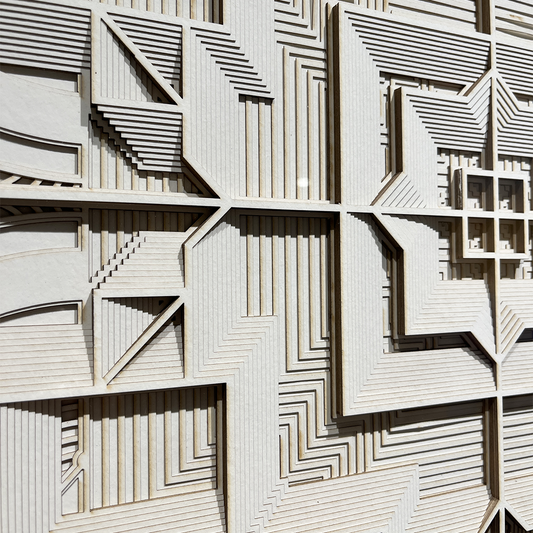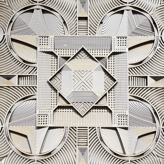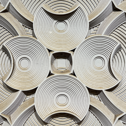 The interrelationship of space, line and volume form the core of Ravi Shankar’s ongoing body of work, titled the Construction Series. The lazer-cut paper relief works are objects of precision, presenting controlled contrasts of light and shadow, texture and flatness, as the artist plays with the rhythms and tensions caused by complex mathematical layering of the medium. Devoid of any distractions of colour, the structures form multiple patterns and tonal gradations through their dimensionality. These evoke ideas of architectural labyrinths, diagrams of sacred geometry or even topographies of imagined landscapes, as the eye is drawn inward and across the surfaces. Looking back at Ravi Shankar’s prolific practice of 4 decades and more, one can follow his journey through various expressive phases, in which he self-assuredly explored abstraction, figuration and symbolic representation, each phase responding to his external experiences and internal responses to time, memory and place. The son of C.L.S. Mani, a trained artist and prolific art director, Shankar was exposed to the world of culture, design and creative expression from his childhood. In the late 70s, he joined the Government College of Fine Arts, Chennai. Turning towards printmaking, he was guided by masters such as R.B. Bhaskaran during his academic years, and later by stalwarts like Devraj Dakoji, at the Garhi studios, Delhi, supported by a research grant from the Lalit Kala Akademi. Looking back at his etching prints from the 80s, in which he developed intricate atmospheres with the use of interlocking imagery— circles, triangles, arcs, grids, waves - one can follow the inherent elements marking his visual language that he has carried forward and experimented with. The contouring, depth and volume that were purely visual constructs of linear and tonal variation have now acquired a physical dimension; the emotive and cognitive articulation embedded within his symbolic narratives and intense pen-and-ink drawings have now found new form in the minimalism of the white paper constructions. “Every material I’ve touched—zinc plate, charcoal, vector line, pen nib, pigment, or cut paper—has taught me something essential. That geometry is not a structure; it is a language. That figuration is not about the body; it is about the residue of memory. That abstraction is not detachment; it is often the most intimate form of truth”, he says. ...Several turning points in Shankar’s journey and creative career impacted his processes, and generated organic shifts within his visual language and methodology of making. Working with the Indo-German GTZ (Gesellschaft für Technische Zusammenarbeit) project as a graphic designer in the early 90s, he taught himself several software(s) and became one of the first artists in Chennai to explore independent vector-based digital art, that he pursued with deep interest; this continues to reflect in his current series. Subsequently, his experiences at Edinburgh Printmakers and Newcastle University on a Charles Wallace grant for printmaking, and his sojourns at Cholamandal artists village outside Chennai, and in rural Kerala, influenced and expanded his art practise in varied ways. While the medium and processes have altered, the underlying philosophy and formal discipline of his visual language remain deeply connected to the truth and meaning he pursues, formally and conceptually.