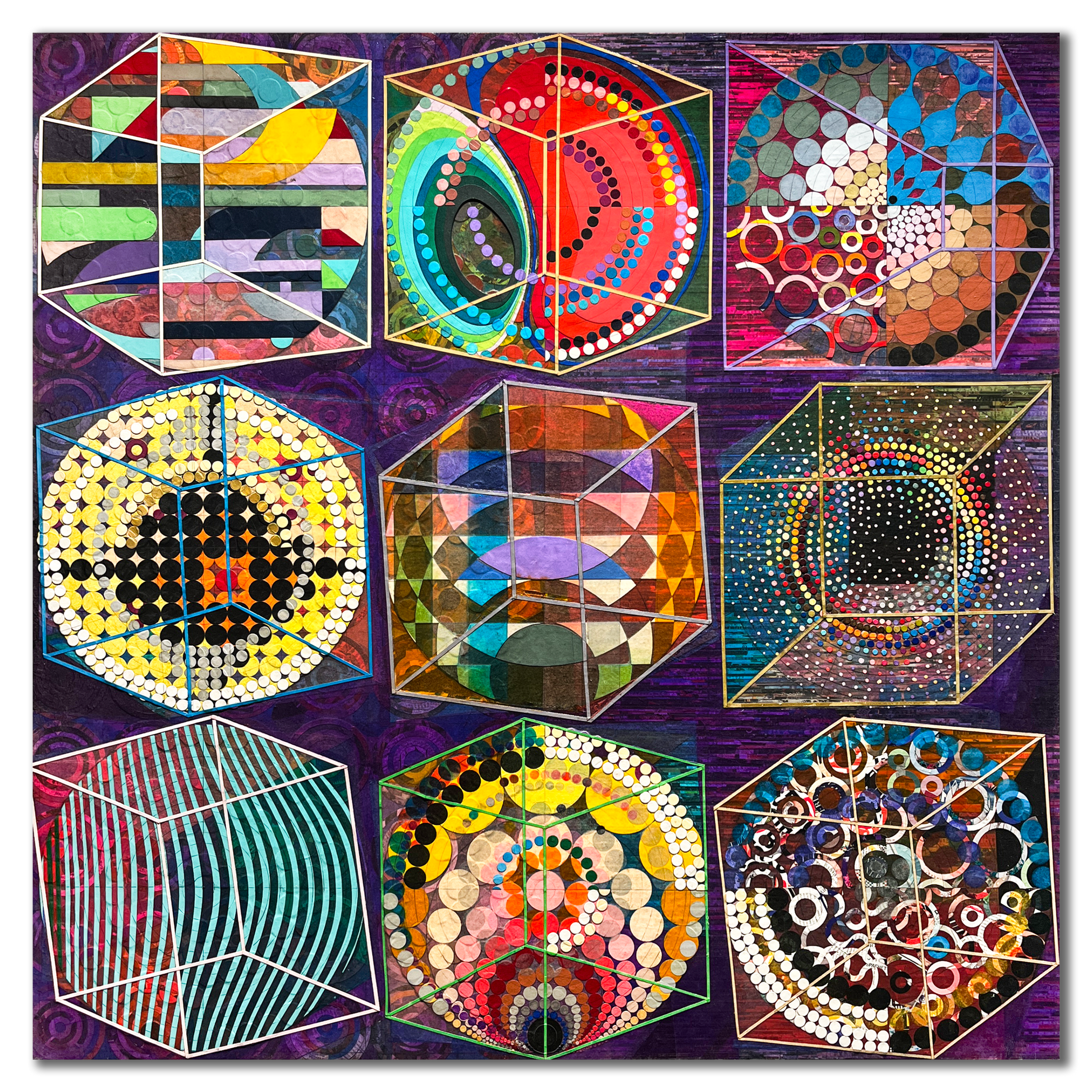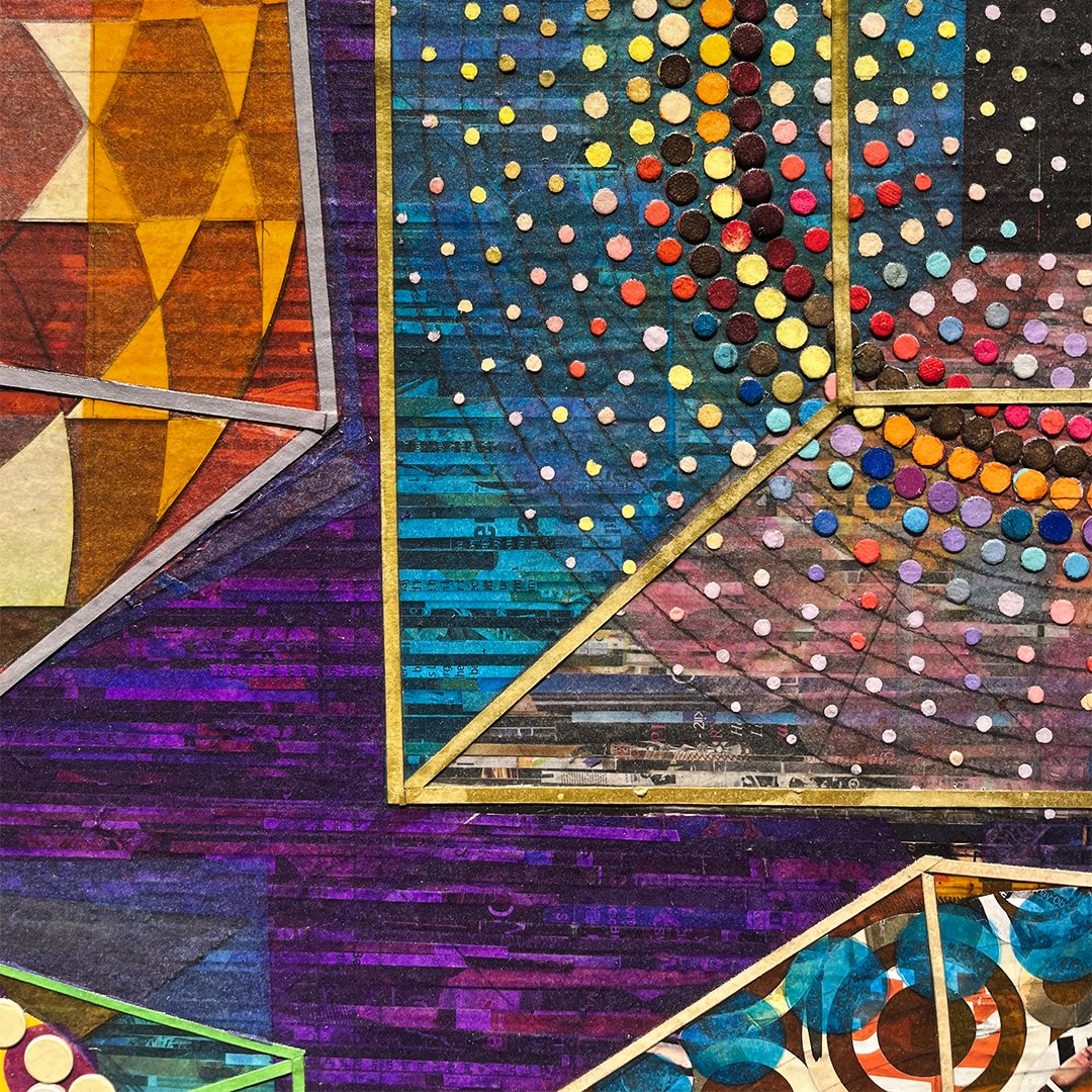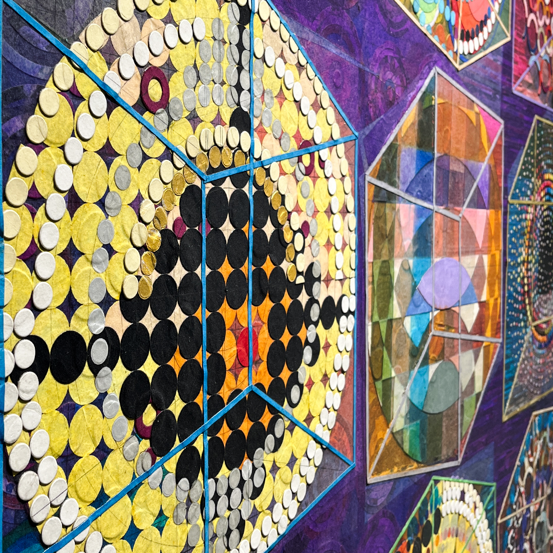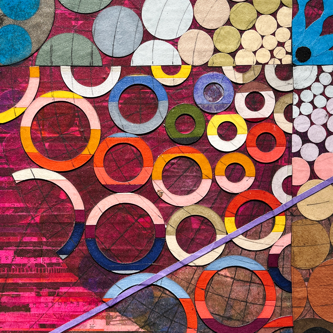 Ganesh Selvaraj is a prominent artist-thinker from Chennai, known for his introspective approach and distinctive abstraction. A pioneer in the city’s emerging new school of art, Selvaraj has developed a unique voice, rooted in innovative techniques and a deep exploration of identity, existence, and the human experience....Does your brain see what the eyes see? When you "see", is it because it is, or because it should be? In an age of overwhelming information and stimuli, the brain instinctively strives to find meaning, attempting to define every sensation it encounters. Pattern recognition has been a vital survival tool, allowing early humans to spot hidden predators. This ability is so deeply ingrained that when confronted with a random pattern, the brain automatically seeks to make sense of it. If a random arrangement of shapes can be reinterpreted into something familiar, the brain will do so—like seeing faces in rock formations, shapes in clouds, or images that evoke Pareidolia and Apophenia. Selvaraj’s latest works with paper explore this very human act of interpretation. “This drive to interpret is so deeply ingrained in human nature, that we often fail to realize that simplicity exists without interpretation”, Selvaraj says. Through layers of lines, rectangles and carefully arranged colored circles, Selvaraj creates compositions that are hypnotic and contemplative revealing a profound truth: by trying to analyze and interpret, we turn the simple into the complex, approaching simplicity as if it were complex.