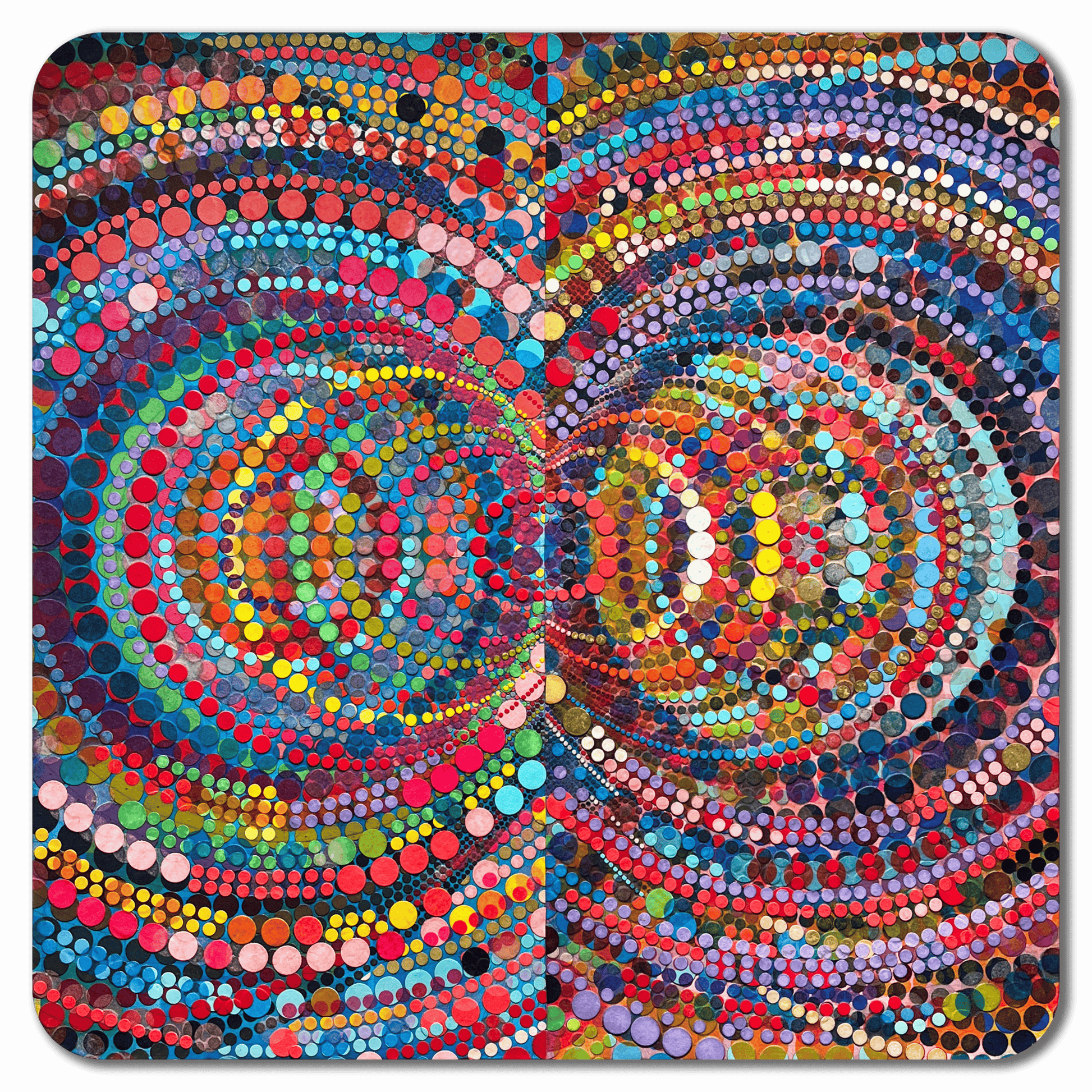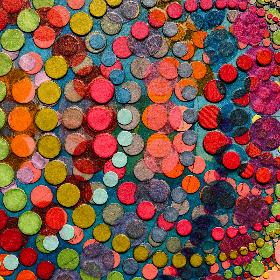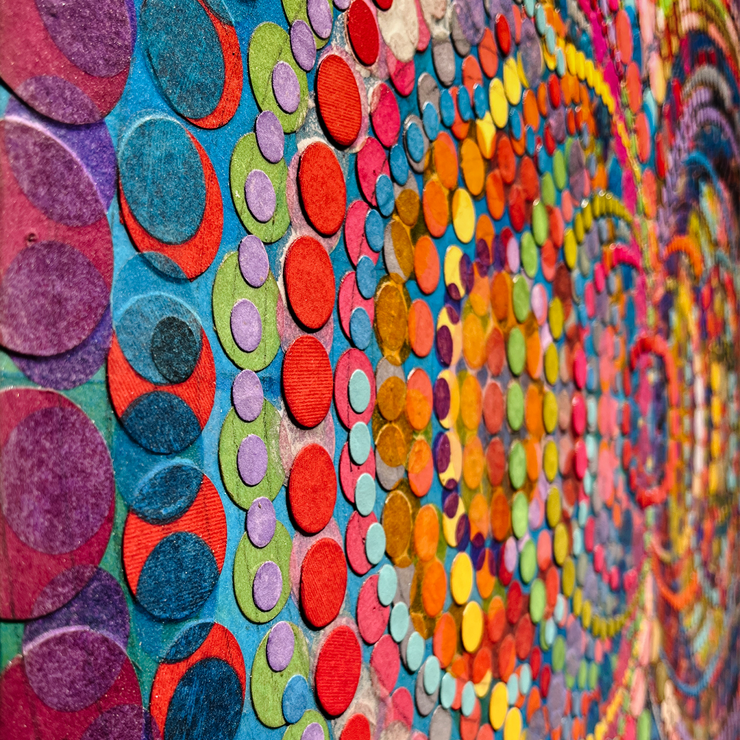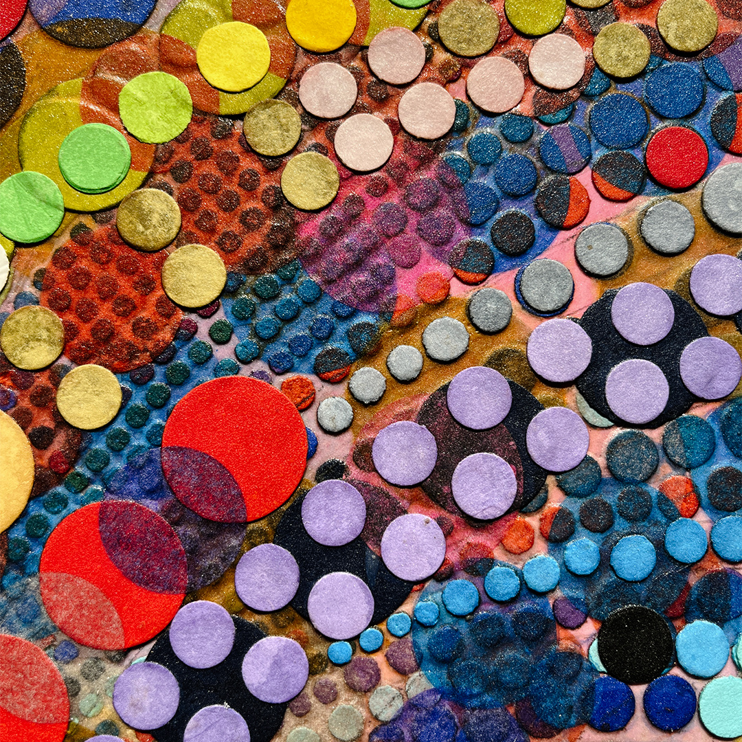 Ganesh Selvaraj is a prominent artist-thinker from Chennai, known for his introspective approach and distinctive abstraction. A pioneer in the city’s emerging new school of art, Selvaraj has developed a unique voice, rooted in innovative techniques and a deep exploration of identity, existence, and the human experience....Does your brain see what the eyes see? When you "see", is it because it is, or because it should be? In an age of overwhelming information and stimuli, the brain instinctively strives to find meaning, attempting to define every sensation it encounters. Pattern recognition has been a vital survival tool, allowing early humans to spot hidden predators. This ability is so deeply ingrained that when confronted with a random pattern, the brain automatically seeks to make sense of it. If a random arrangement of shapes can be reinterpreted into something familiar, the brain will do so—like seeing faces in rock formations, shapes in clouds, or images that evoke Pareidolia and Apophenia. Selvaraj’s latest works with paper explore this very human act of interpretation. “This drive to interpret is so deeply ingrained in human nature, that we often fail to realize that simplicity exists without interpretation”, Selvaraj says. Through layers of lines, rectangles and carefully arranged colored circles, Selvaraj creates compositions that are hypnotic and contemplative revealing a profound truth: by trying to analyze and interpret, we turn the simple into the complex, approaching simplicity as if it were complex.