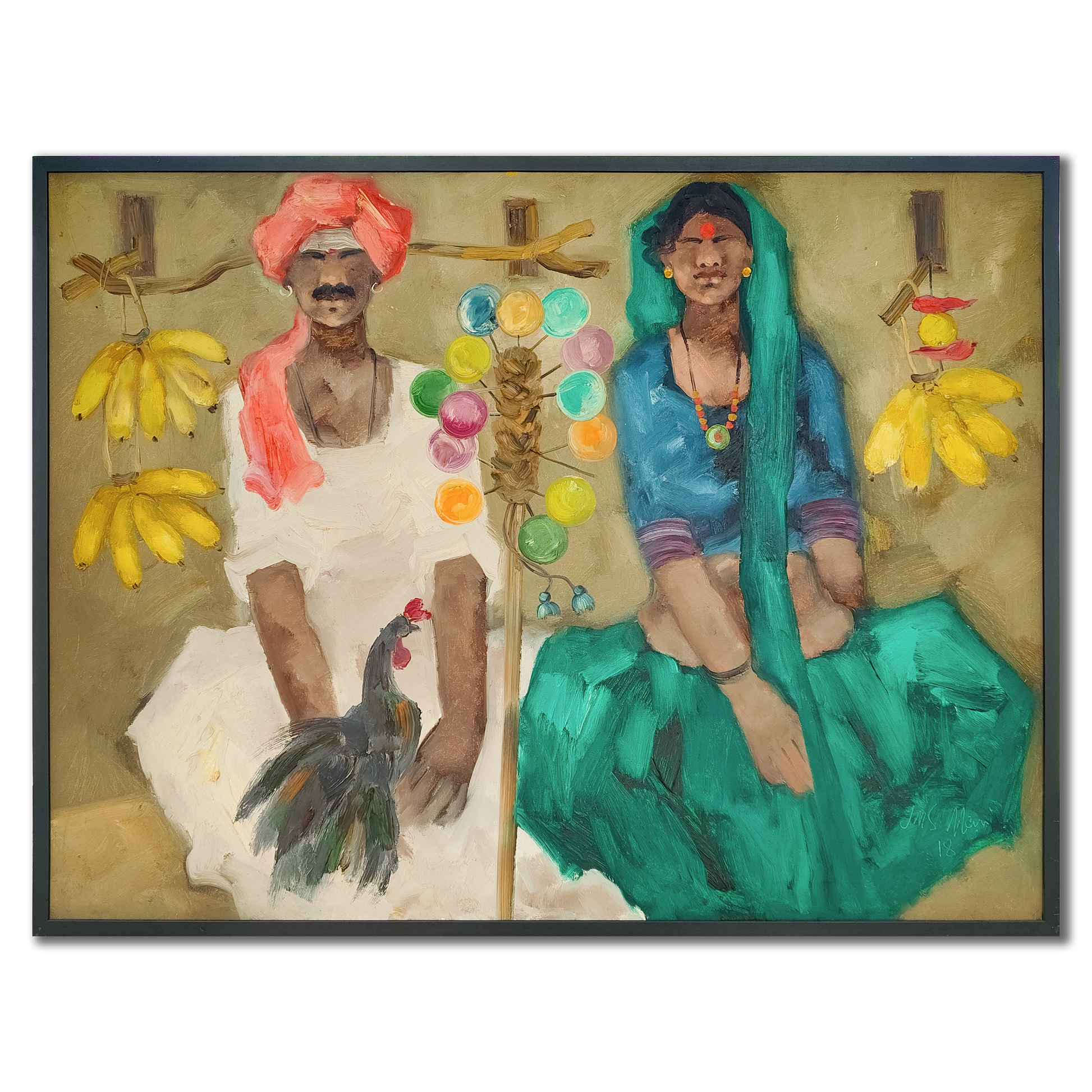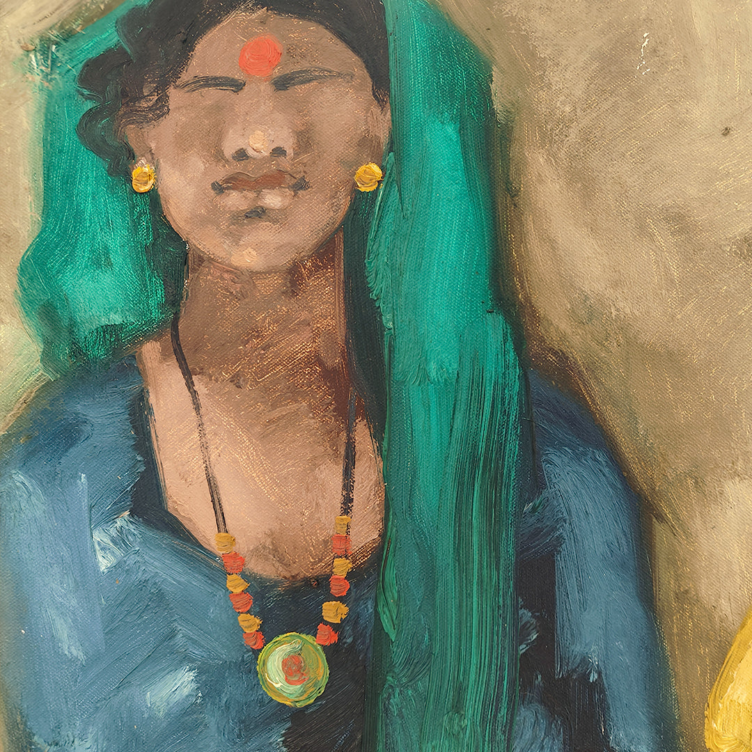 Over the course of his long career, the late JMS Mani experimented with several distinct mediums and styles. Exploring nature-based and gestural abstractions, etchings, in addition to his acrylic and oil paintings, the prolific artist is constantly evolving. ... From sketches in his early years to landscapes and impressionistic and surreal artworks, his repertoire also includes dazzling works made with watercolour, mixed media, printmaking and sculpture. Dealing extensively with physical spaces, creating archetypes of mountains, trees, monuments, boulders, and Hampi’s rocky landscapes, with which he has a continued fascination. Perhaps his most famous body of work, the Badami Series, depicts everyday life in the historical location of Badami in Karnataka, and features a varied cast from flower sellers and fruit vendors to girls in braids and street hawkers. By synthesising contemporary aesthetics and Western formalism with an Indian sensibility, he brings to life the vibrant colours of rural South India.
