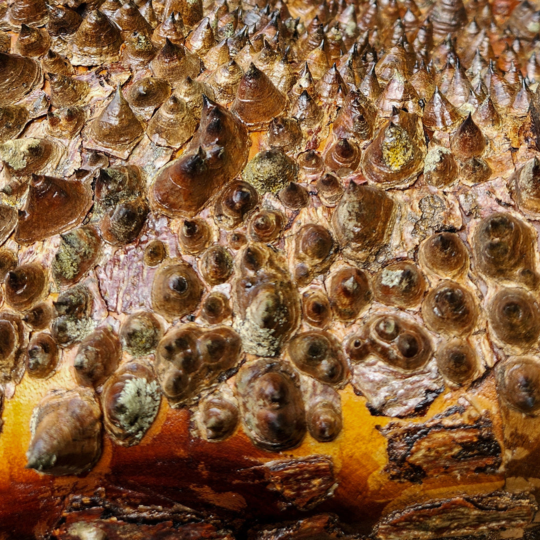 Each sculptural piece offers a meticulous arrangement of vegetal matter, shaped in patterns that play with symmetry and asymmetry, geometric and organic abstraction. In his works with tree-bark, Sandilya brings focus to the intrinsic botanical characteristics of various trees and the textures, colours and type of surfaces that often go unnoticed in the blur of urban living. His other artworks become experimental spaces that explore dimensional formations of twigs, thorns, seeds, dried vines and other natural material that he collects.