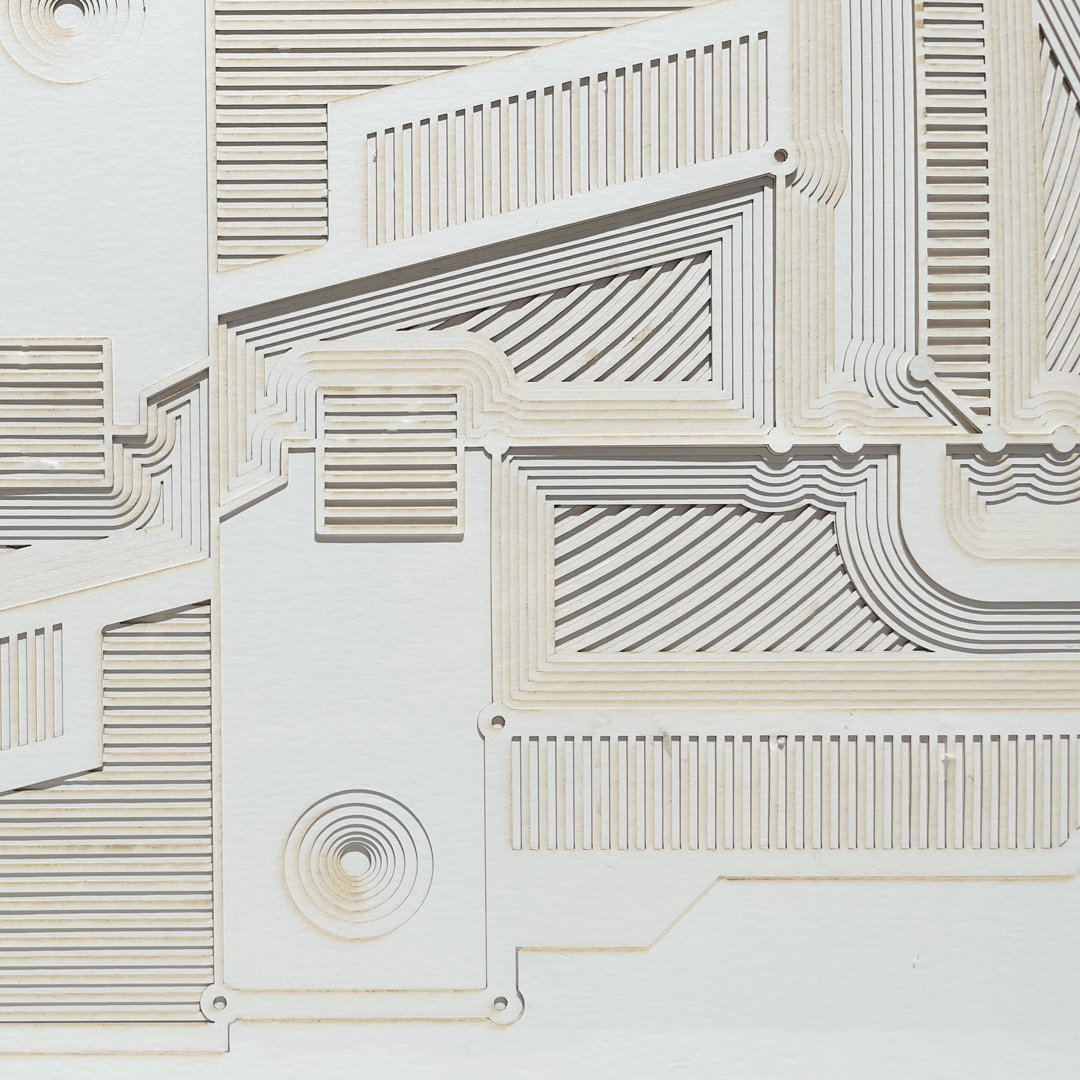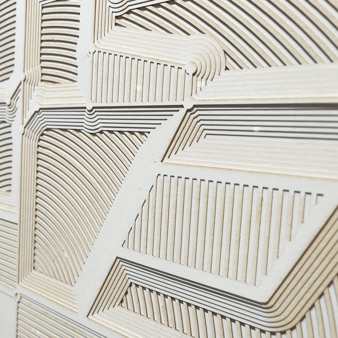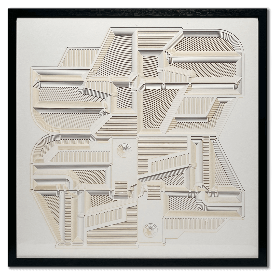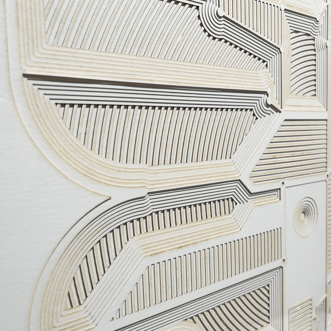 The interrelationship of space, line and volume form the core of Ravi Shankar’s ongoing body of work, titled the Construction Series. The lazer-cut paper relief works are objects of precision, presenting controlled contrasts of light and shadow, texture and flatness, as the artist plays with the rhythms and tensions caused by complex mathematical layering of the medium. Devoid of any distractions of colour, the structures form multiple patterns and tonal gradations through their dimensionality. These evoke ideas of architectural labyrinths, diagrams of sacred geometry or even topographies of imagined landscapes, as the eye is drawn inward and across the surfaces. Looking back at Ravi Shankar’s prolific practice of 4 decades and more, one can follow his journey through various expressive phases, in which he self-assuredly explored abstraction, figuration and symbolic representation, each phase responding to his external experiences and internal responses to time, memory and place. The son of C.L.S. Mani, a trained artist and prolific art director, Shankar was exposed to the world of culture, design and creative expression from his childhood. In the late 70s, he joined the Government College of Fine Arts, Chennai. Turning towards printmaking, he was guided by masters such as R.B. Bhaskaran during his academic years, and later by stalwarts like Devraj Dakoji, at the Garhi studios, Delhi, supported by a research grant from the Lalit Kala Akademi. Looking back at his etching prints from the 80s, in which he developed intricate atmospheres with the use of interlocking imagery— circles, triangles, arcs, grids, waves - one can follow the inherent elements marking his visual language that he has carried forward and experimented with. The contouring, depth and volume that were purely visual constructs of linear and tonal variation have now acquired a physical dimension; the emotive and cognitive articulation embedded within his symbolic narratives and intense pen-and-ink drawings have now found new form in the minimalism of the white paper constructions. “Every material I’ve touched—zinc plate, charcoal, vector line, pen nib, pigment, or cut paper—has taught me something essential. That geometry is not a structure; it is a language. That figuration is not about the body; it is about the residue of memory. That abstraction is not detachment; it is often the most intimate form of truth”, he says. ...Several turning points in Shankar’s journey and creative career impacted his processes, and generated organic shifts within his visual language and methodology of making. Working with the Indo-German GTZ (Gesellschaft für Technische Zusammenarbeit) project as a graphic designer in the early 90s, he taught himself several software(s) and became one of the first artists in Chennai to explore independent vector-based digital art, that he pursued with deep interest; this continues to reflect in his current series. Subsequently, his experiences at Edinburgh Printmakers and Newcastle University on a Charles Wallace grant for printmaking, and his sojourns at Cholamandal artists village outside Chennai, and in rural Kerala, influenced and expanded his art practise in varied ways. While the medium and processes have altered, the underlying philosophy and formal discipline of his visual language remain deeply connected to the truth and meaning he pursues, formally and conceptually.
