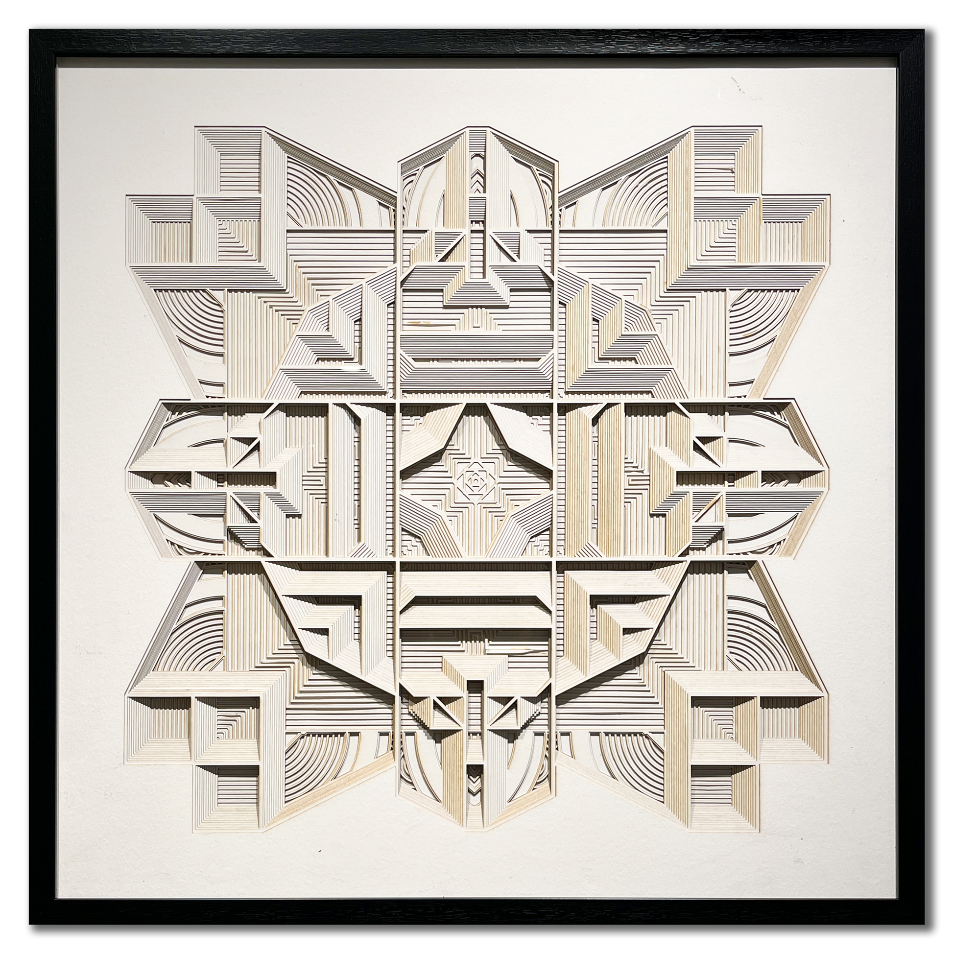 The interrelationship of space, line and volume form the core of Ravi Shankar’s ongoing body of work, titled the Construction Series. The lazer-cut paper relief works are objects of precision, presenting controlled contrasts of light and shadow, texture and flatness, as the artist plays with the rhythms and tensions caused by complex mathematical layering of the medium. Devoid of any distractions of colour, the structures form multiple patterns and tonal gradations through their dimensionality. These evoke ideas of architectural labyrinths, diagrams of sacred geometry or even topographies of imagined landscapes, as the eye is drawn inward and across the surfaces. Looking back at Ravi Shankar’s prolific practice of 4 decades and more, one can follow his journey through various expressive phases, in which he self-assuredly explored abstraction, figuration and symbolic representation, each phase responding to his external experiences and internal responses to time, memory and place. The son of C.L.S. Mani, a trained artist and prolific art director, Shankar was exposed to the world of culture, design and creative expression from his childhood. In the late 70s, he joined the Government College of Fine Arts, Chennai. Turning towards printmaking, he was guided by masters such as R.B. Bhaskaran during his academic years, and later by stalwarts like Devraj Dakoji, at the Garhi studios, Delhi, supported by a research grant from the Lalit Kala Akademi. Looking back at his etching prints from the 80s, in which he developed intricate atmospheres with the use of interlocking imagery— circles, triangles, arcs, grids, waves - one can follow the inherent elements marking his visual language that he has carried forward and experimented with. The contouring, depth and volume that were purely visual constructs of linear and tonal variation have now acquired a physical dimension; the emotive and cognitive articulation embedded within his symbolic narratives and intense pen-and-ink drawings have now found new form in the minimalism of the white paper constructions. “Every material I’ve touched—zinc plate, charcoal, vector line, pen nib, pigment, or cut paper—has taught me something essential. That geometry is not a structure; it is a language. That figuration is not about the body; it is about the residue of memory. That abstraction is not detachment; it is often the most intimate form of truth”, he says. ...Several turning points in Shankar’s journey and creative career impacted his processes, and generated organic shifts within his visual language and methodology of making. Working with the Indo-German GTZ (Gesellschaft für Technische Zusammenarbeit) project as a graphic designer in the early 90s, he taught himself several software(s) and became one of the first artists in Chennai to explore independent vector-based digital art, that he pursued with deep interest; this continues to reflect in his current series. Subsequently, his experiences at Edinburgh Printmakers and Newcastle University on a Charles Wallace grant for printmaking, and his sojourns at Cholamandal artists village outside Chennai, and in rural Kerala, influenced and expanded his art practise in varied ways. While the medium and processes have altered, the underlying philosophy and formal discipline of his visual language remain deeply connected to the truth and meaning he pursues, formally and conceptually.