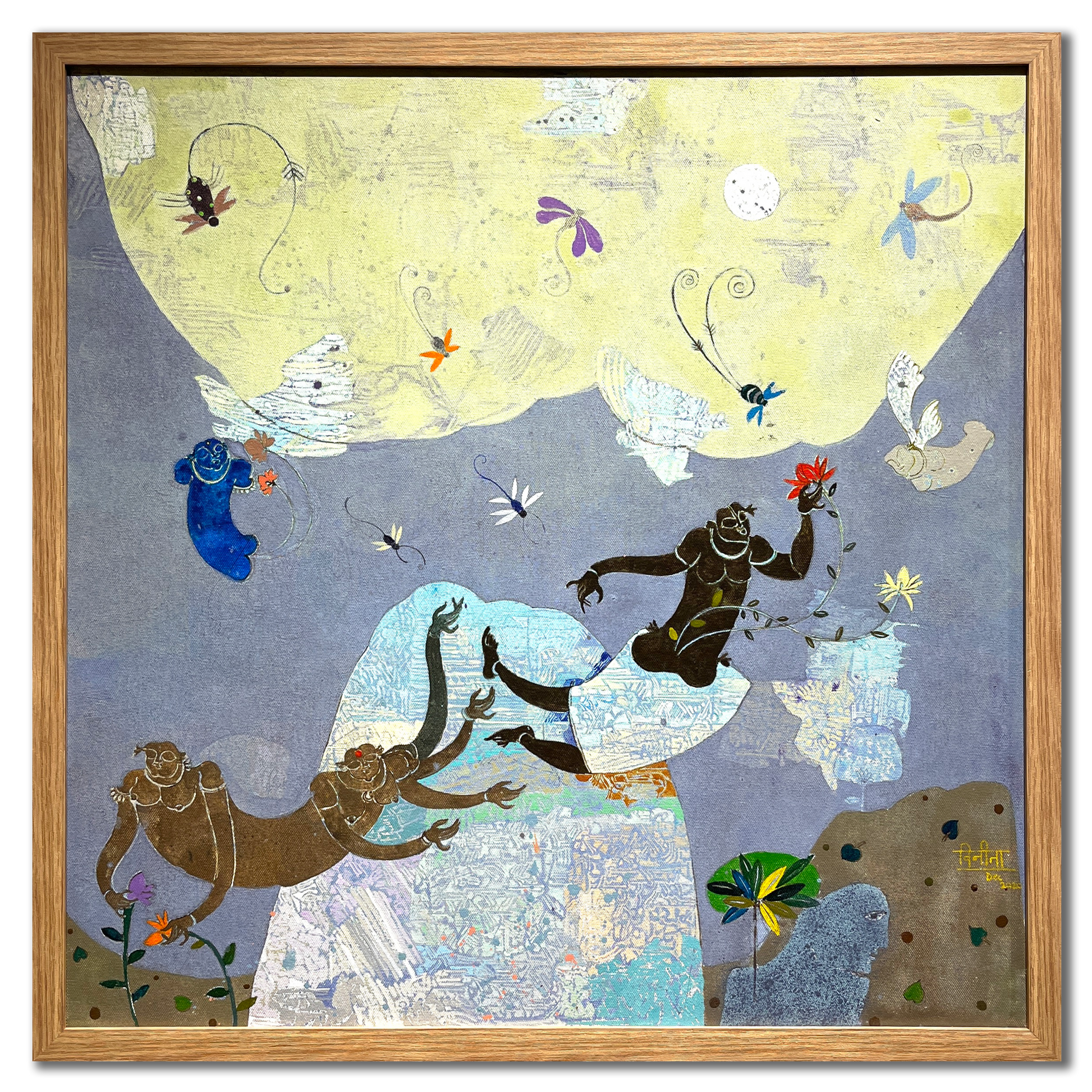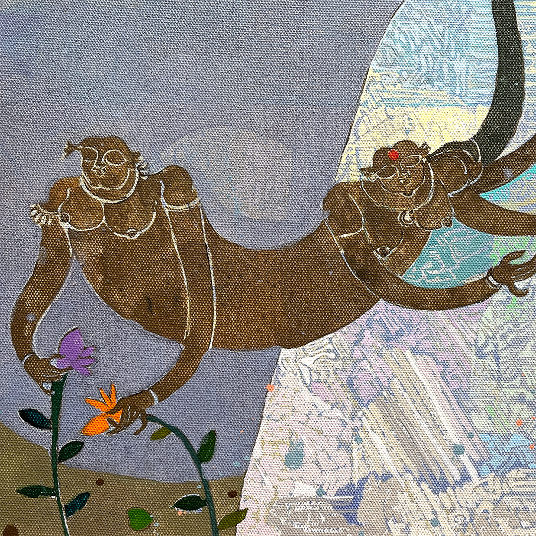 Describing her work, she says ‘’I confess to be a dreamer, and my works are the ethereal manifestation of these nocturnal journeys - a delicate collage of memories and fantasies”. Poetically connecting with forms that emerge from her sub-conscious, Veenita sees humanity as inseparable from nature, as she populates a world full of whimsical figures and benign creatures. Mythological tales that are naturally attuned to magical happenings and otherworldly attributes match perfectly with her visual vocabulary that celebrates acceptance and love.