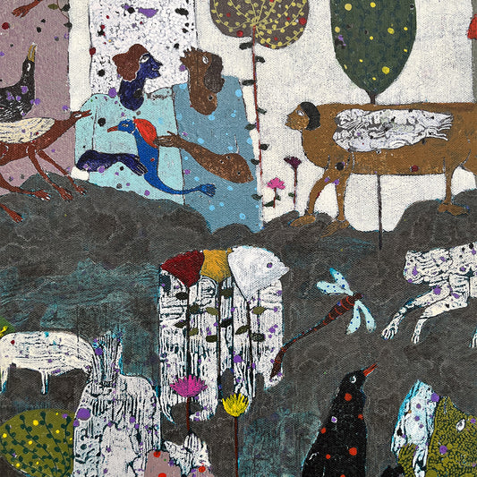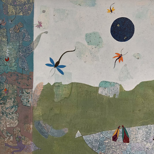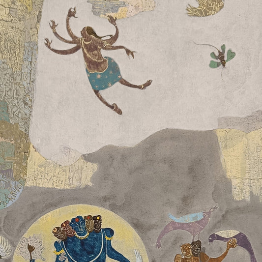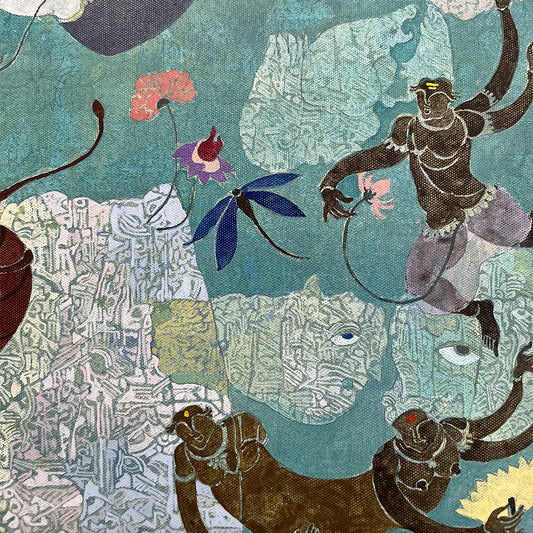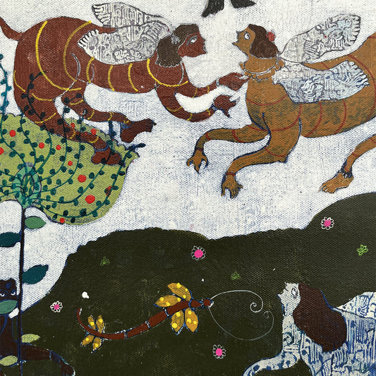 Describing her work, she says ‘’I confess to be a dreamer, and my works are the ethereal manifestation of these nocturnal journeys - a delicate collage of memories and fantasies”. Poetically connecting with forms that emerge from her sub-conscious, Veenita sees humanity as inseparable from nature, as she populates a world full of whimsical figures and benign creatures. Mythological tales that are naturally attuned to magical happenings and otherworldly attributes match perfectly with her visual vocabulary that celebrates acceptance and love.