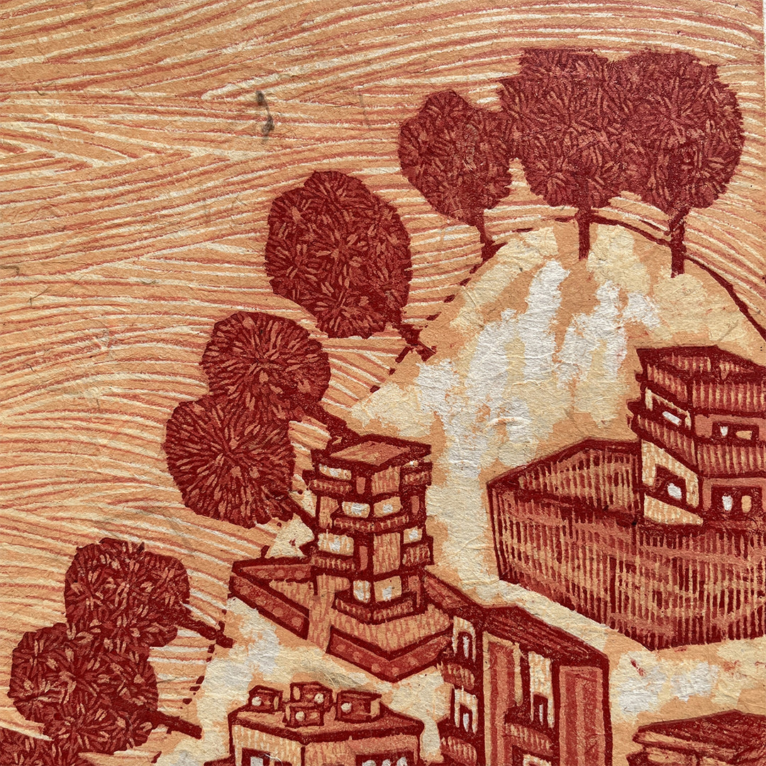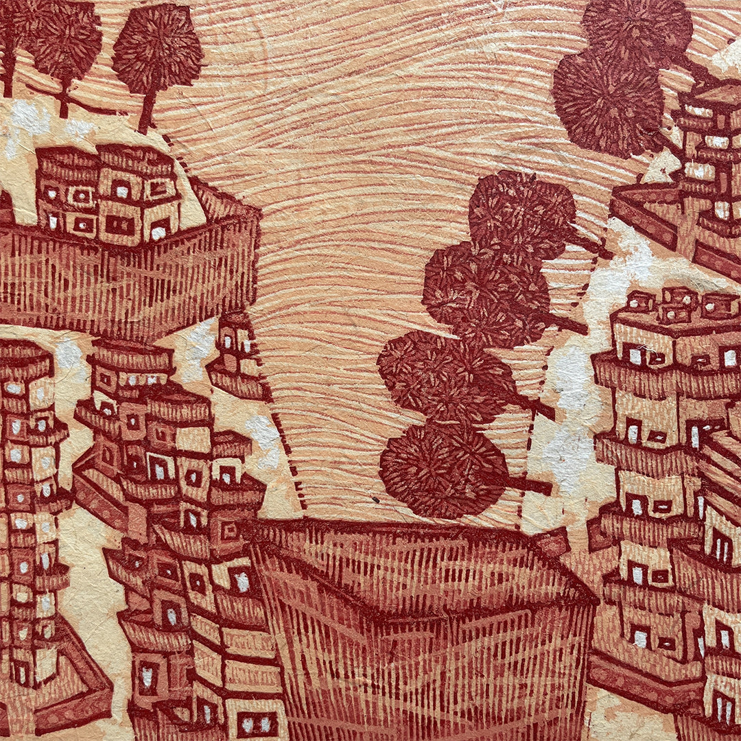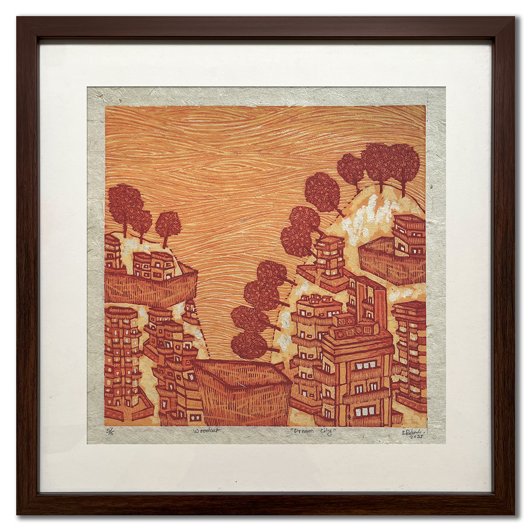 Payal Rokade, is an up and coming artist from Umred, a small town in Maharashtra. Her close relationship with nature is the foundation of her work, reflecting the harmony, complexity, and the fragility of this connection. As she moved to a large city, she noticed that the calm of nature was replaced by the relentless rush of urban life—the constant hum of cars, hurried footsteps, and a silence where nature once thrived. This shift had a deep impact that began to surface in her dreams. One recurring nightmare featured a world where nature had vanished, leaving only towering buildings behind—a chilling image that resonated with the irregular climate patterns we now witness. This dream became the inspiration for this series, Dream City....Through her work, Payal continues to explore the complex relationship between nature and humanity. As we move forward in our pursuit of progress, we often forget that nature, too, is unstoppable. There is an urgent need to preserve the delicate balance between human advancement and the natural world. Payal strives to show the beauty and importance of this relationship, and the consequences if it is neglected.