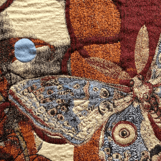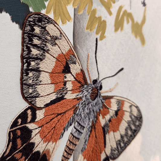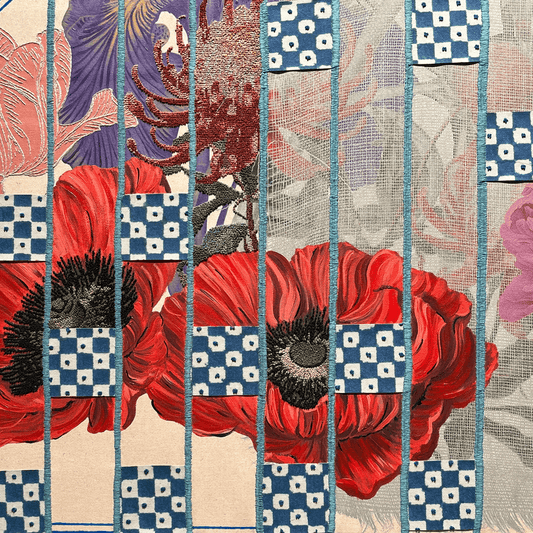 Rakhee Shenoy’s surreal still life collages transport you to a realm of wonder, comfort and escape. The textile artist’s dreamy works delight in the art of crossovers and flipping how we view reality. Layered and fluid mixed media works merge internal and external worlds as they spill over onto a single frame. Personal objects, memories and machines share space with wildflowers, vegetation, fruits and insects in a mind-bending mish-mash.... A fish swims over a bowl of oranges and past a grocery bag over which an ant makes its way. With intriguing layers, textures, textual details, the artworks are made using embroidery, painting, hand-drawing and digital art. Shenoy adds symbols of personal significance and nature-based muses like silk moths, butterflies and fish, which represent freedom and beauty.