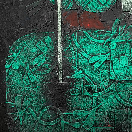 Basuki Dasgupta is an intrepid storyteller, recasting ancient fables in a distinctly contemporary light. His wide-ranging mixed-media works feature non-figurative studies, mythological imagery, and his trademark ethereal, puppet-like figures. ... From indigenous traditions like the Pattachitra and Kalighat forms of Bengal, to the symbolism of goddess Durga as the embodiment of ‘Shakti’, this rich oeuvre is inspired by an equally wide range of influences. These also include Baul music, as well as the famed terracotta temples of his home town, Bishnupur. Fusing abstract caricature with vernacular imagery, Dasgupta’s works are saturated in colours and whimsy on the surface. Upon deeper examination, they reveal a recurring poignant bridging of dualities, whether between nature and mankind, darkness and light, rural and urban, ego and self, or the human and divine.