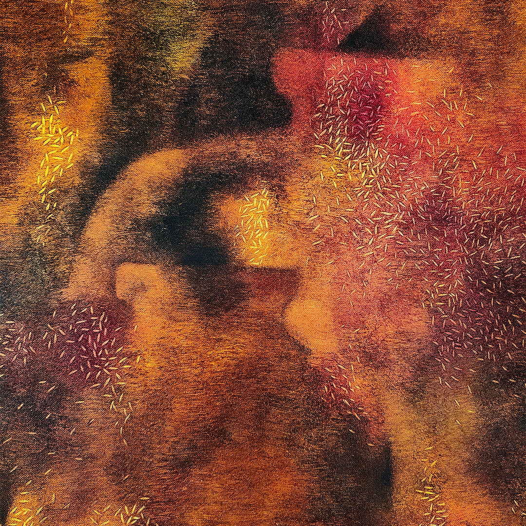 Bharti Prajapati’s work is a reimagining of Indian folk art, in which the characters are both fantastical and deeply familiar. Inspired by the five elements, and curious about how they interact so seamlessly in nature and within the human body, Prajapati paints with forms and colours that are innately elemental. Her colours are borrowed from the natural world--reds, ochres, earth tones and the sudden splash of indigo are expertly blended together in vivid detail. ... Within each painting, Prajapati moves from the intricate to the abstract, seeming to capture her subjects in a heightened state of movement. She supplies her characters with emotion, but their world is a wash of patterns and shadows. In essence, Prajapati reimagines the collage of elements around us as a vivid tableau of light and life. Prajapati has been invited to showcase her work at numerous Indian and international exhibitions, and is a recipient of the Bharat Kala Ratna Award.