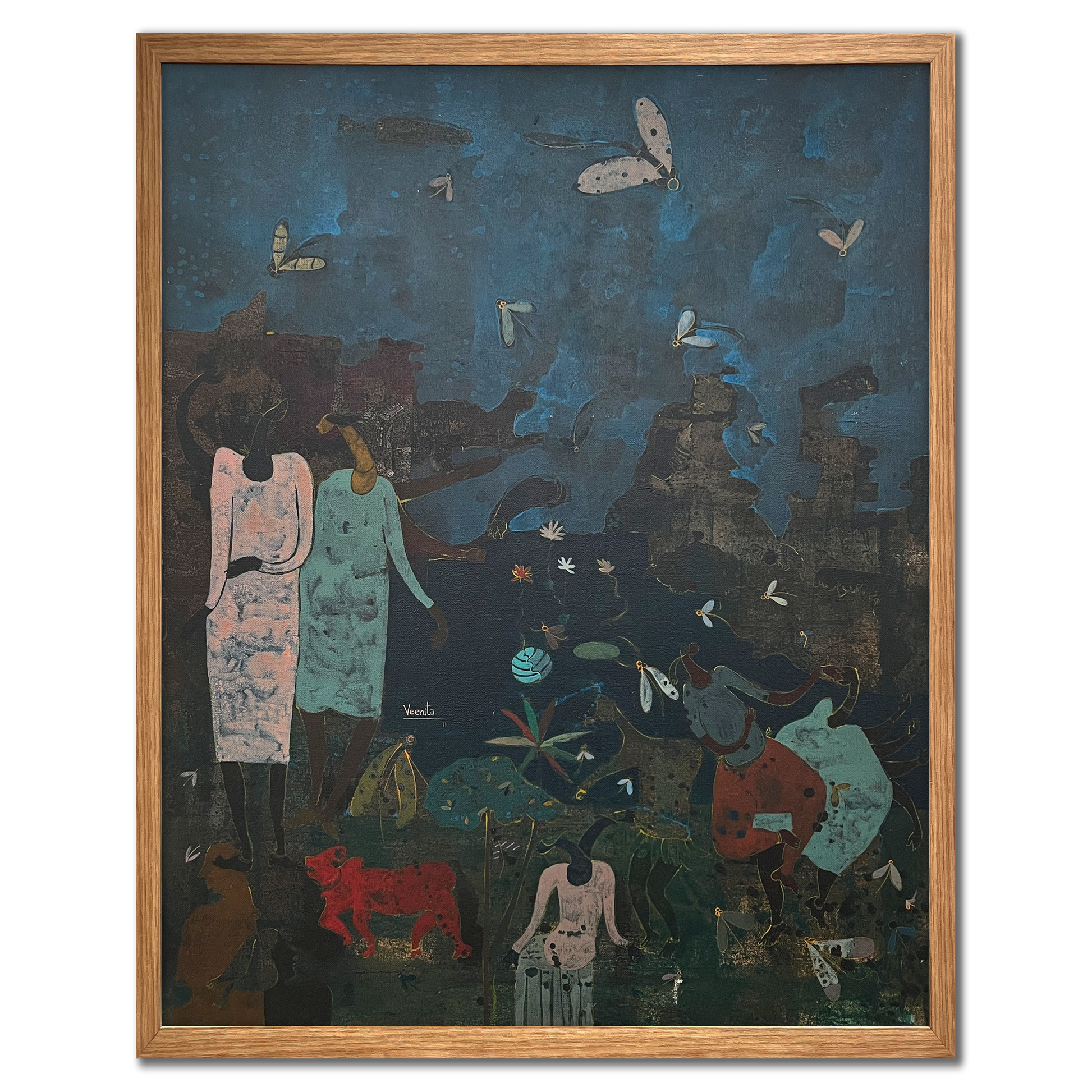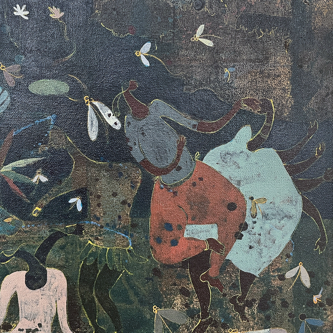 Describing her work, she says ‘’I confess to be a dreamer, and my works are the ethereal manifestation of these nocturnal journeys - a delicate collage of memories and fantasies”. Poetically connecting with forms that emerge from her sub-conscious, Veenita sees humanity as inseparable from nature, as she populates a world full of whimsical figures and benign creatures. Mythological tales that are naturally attuned to magical happenings and otherworldly attributes match perfectly with her visual vocabulary that celebrates acceptance and love.