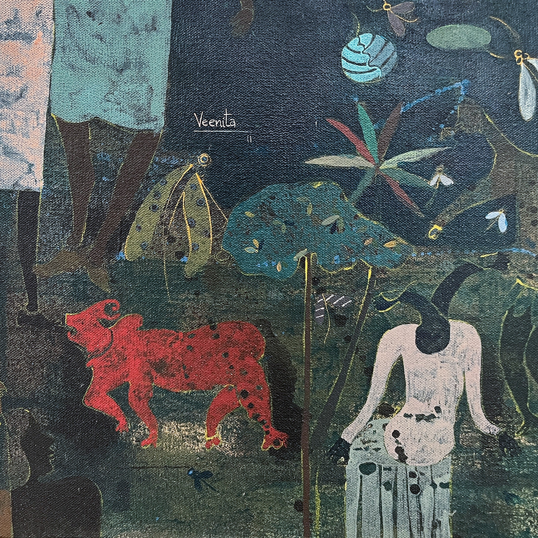 Positioned within a lineage of artists whom she admires, including masters like Laxman Pai, K.G. Subramanyan and Madhvi Parekh, Veenita creates imagery that builds bridges between indigenous and international sensibilities, between traditional and modern ways of making.