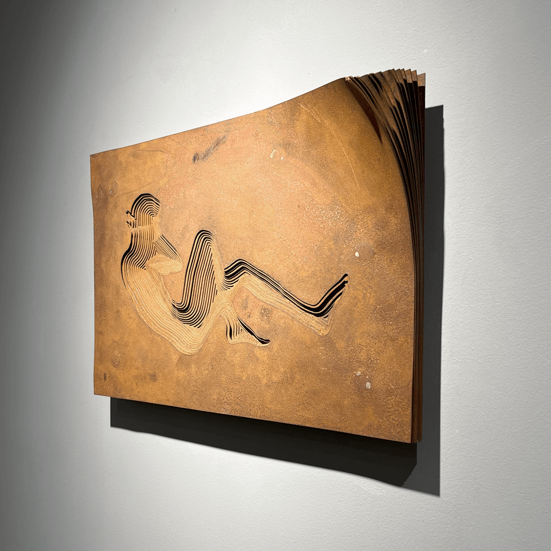 ...In his work, the motif of the nest has consistently been a metaphor for the body. In both paintings and sculptures, Jana has explored the idea that human consciousness and selfhood resides within this bodily container; it is protected as well as hidden, with layers or glimpses being revealed and discovered. Deep observation of everything around him has been one of the key elements to his artistic process from the start. Finding the body compelling and beautiful, he often makes studies and tracings of himself. The resultant works bring about a philosophical engagement with the complexity of the human persona - its internal and external, physical and spiritual traits. Acknowledging the form’s existence as an idea even before the idea takes a physical shape, Jana explains, “This idea of physical absence/presence fascinates me and I translate this concept into my work using the notion of a trace. The trace is both a presence and an absence and I bring this to my work by literally tracing the body impression on iron.”