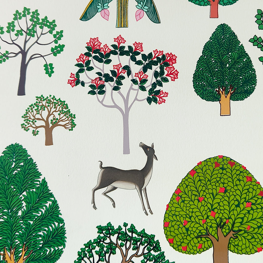 Madan Meena works extensively with rural, nomadic and tribal communities of his native Rajasthan. Through their last living practitioners, he delves into the state’s oldest folk traditions, documenting their lives in a bid to preserve their identities. ... As a practitioner, Meena revisits the languishing craft traditions of his birthplace, not only studying them as an academic, but reviving them as an artist. The classic Nayak and Nayika in his works are reimagined through a contemporary lens--the Barahmsa series is an expression of their emotions, told through the motifs of animals, while the Selfie series puts them in the centre of changing social milieu. In his preservation of lost or extinct artistic practices, he adds a contemporary flourish, as in his work drawn from the Kota and Bundi styles of miniature painting, in collaboration with local miniature artists. An artist and researcher, his doctoral thesis, “Art of the Meena Tribe,” which focused on the traditions of his own ancestral community, was accompanied by an exhibition of wall paintings by the women of the tribe. A recurring theme throughout his work is nostalgia, and the nomadic traveller’s longing for his homeland.