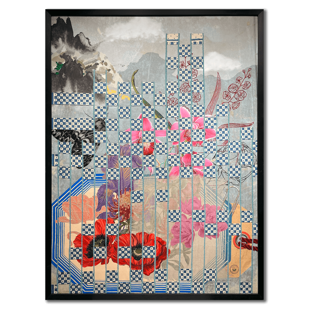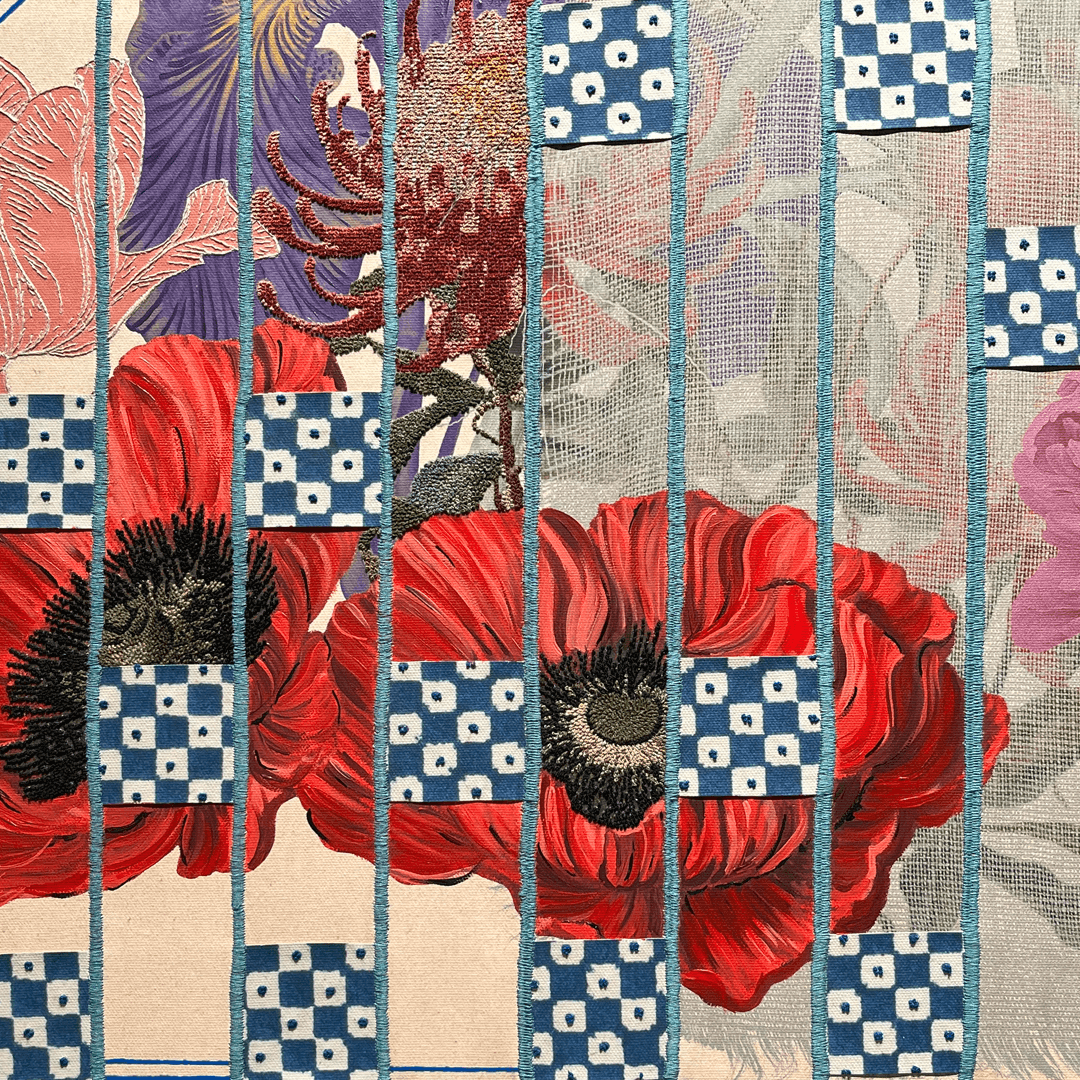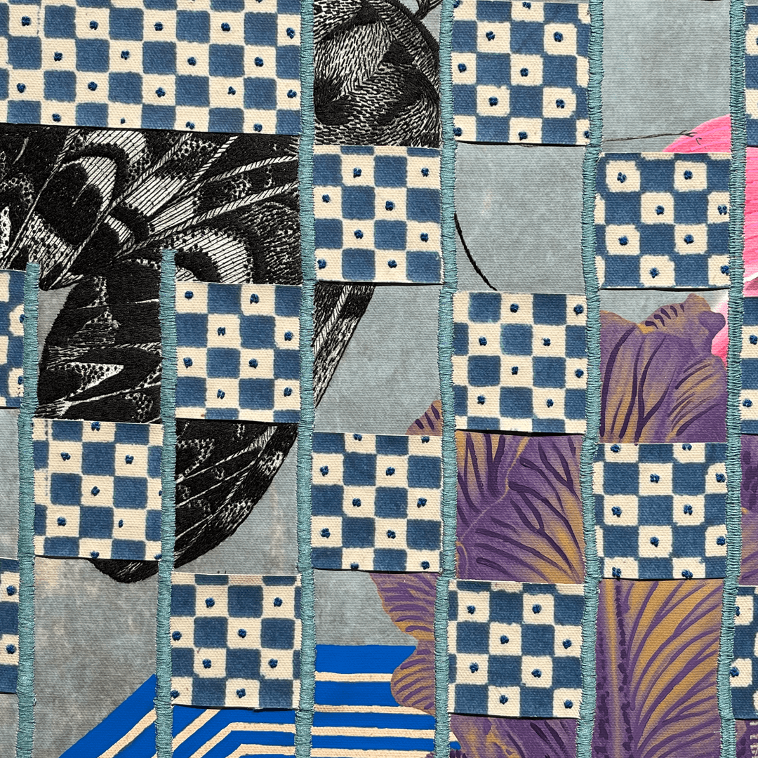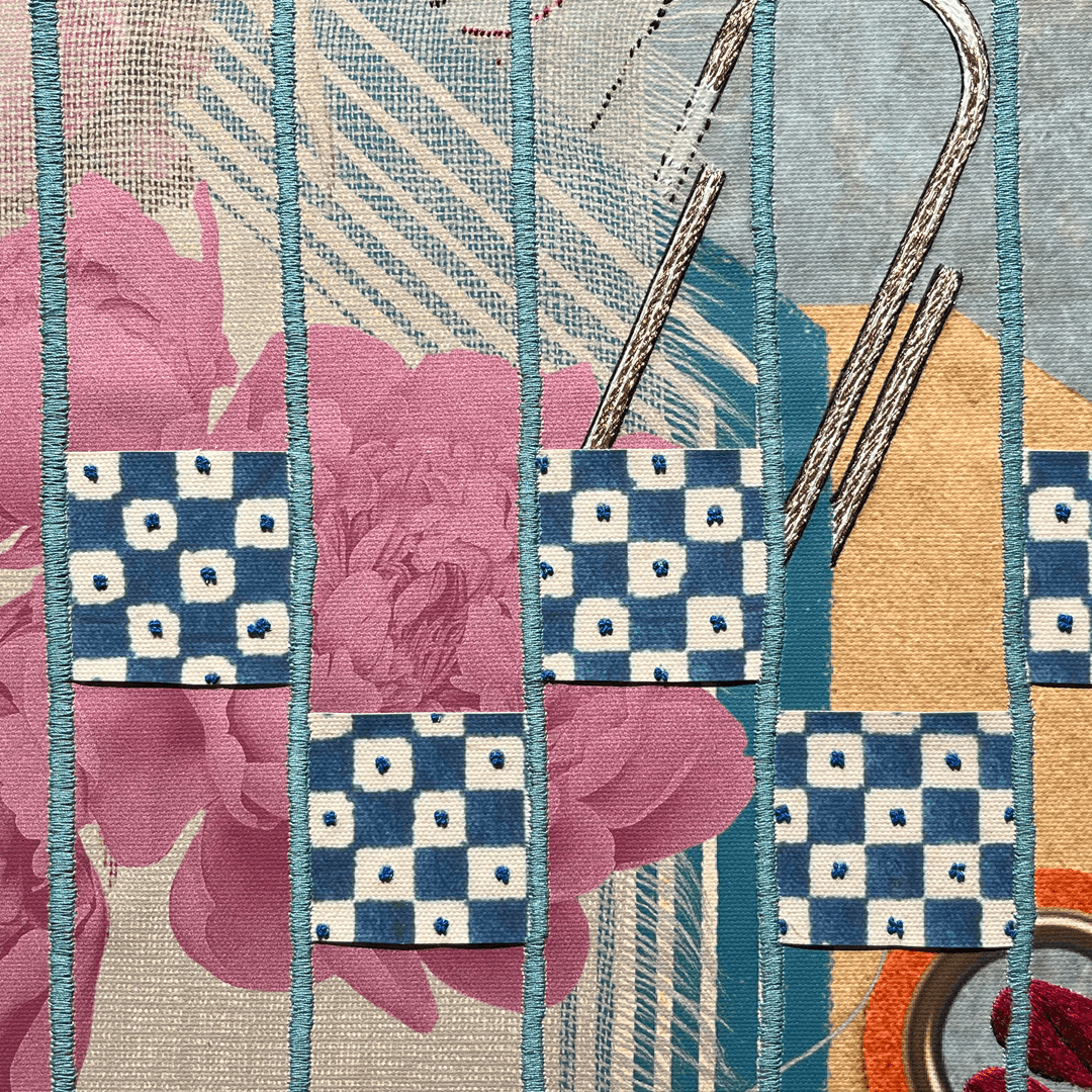 Rakhee Shenoy’s surreal still life collages transport you to a realm of wonder, comfort and escape. The textile artist’s dreamy works delight in the art of crossovers and flipping how we view reality. Layered and fluid mixed media works merge internal and external worlds as they spill over onto a single frame. Personal objects, memories and machines share space with wildflowers, vegetation, fruits and insects in a mind-bending mish-mash.... A fish swims over a bowl of oranges and past a grocery bag over which an ant makes its way. With intriguing layers, textures, textual details, the artworks are made using embroidery, painting, hand-drawing and digital art. Shenoy adds symbols of personal significance and nature-based muses like silk moths, butterflies and fish, which represent freedom and beauty.