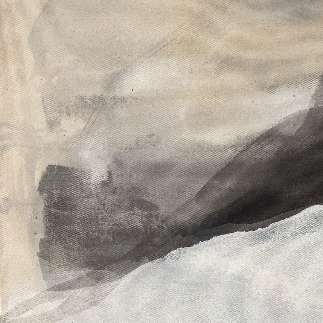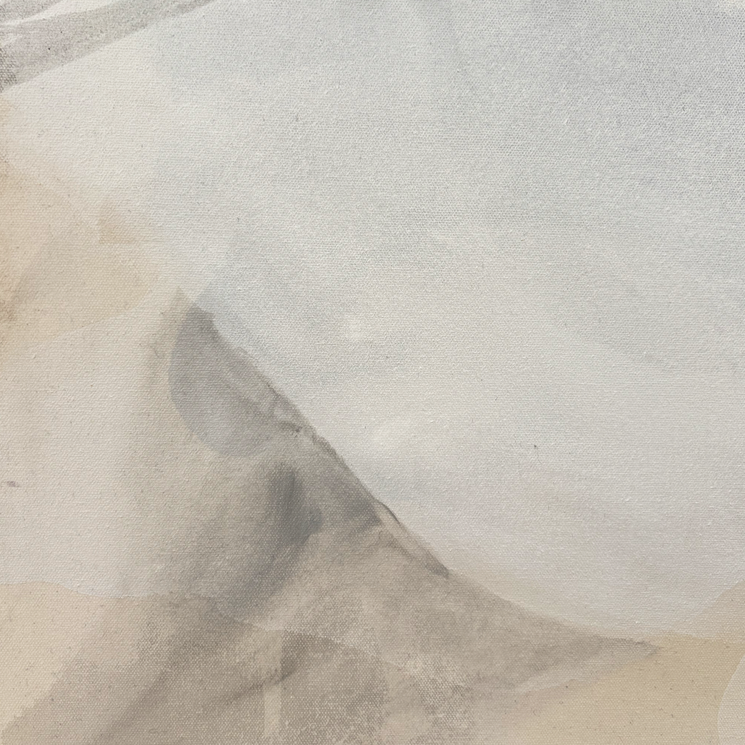 Meghana’s artworks draw you into an abstract wilderness of colour, sensation, texture and light. Her abstract acrylics map luminous terrains that are a transportive meditative experience – a deep breath that evokes peace, calm, and solace. ... The organic, amorphous, muslin-thin mists and shapes that float across her expansive canvases are achieved by pouring watered-down paint onto the canvas, letting the paint take its own form. The artist then nudges the paint in different directions, repeating the process in layers to create enigmatic, intuitive pieces. On her process, she says, “After all – in life, we only have limited control. For the rest, we need to let things take its course.” Meghana’s earthy, ethereal palettes full of browns, blacks, white and blues resemble elemental natural forces, contributing to this sense of comfort, inner peace, and the idea of giving way, and letting the world take over.