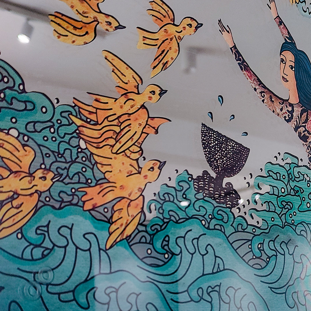 We ship worldwide. Artworks are either rolled in a tube, or fully framed in a wooden crate. If you would like your artwork shipped with a frame, please contact us by clicking the INQUIRE button above.