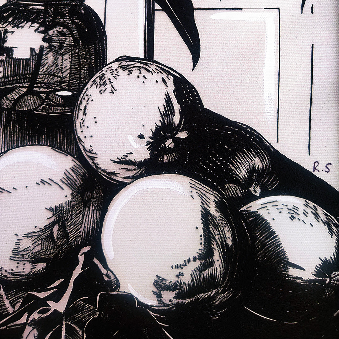 Rakhee Shenoy’s surreal still life collages transport you to a realm of wonder, comfort and escape. The textile artist’s dreamy works delight in the art of crossovers and flipping how we view reality. Layered and fluid mixed media works merge internal and external worlds as they spill over onto a single frame. Personal objects, memories and machines share space with wildflowers, vegetation, fruits and insects in a mind-bending mish-mash.... A fish swims over a bowl of oranges and past a grocery bag over which an ant makes its way. With intriguing layers, textures, textual details, the artworks are made using embroidery, painting, hand-drawing and digital art. Shenoy adds symbols of personal significance and nature-based muses like silk moths, butterflies and fish, which represent freedom and beauty.