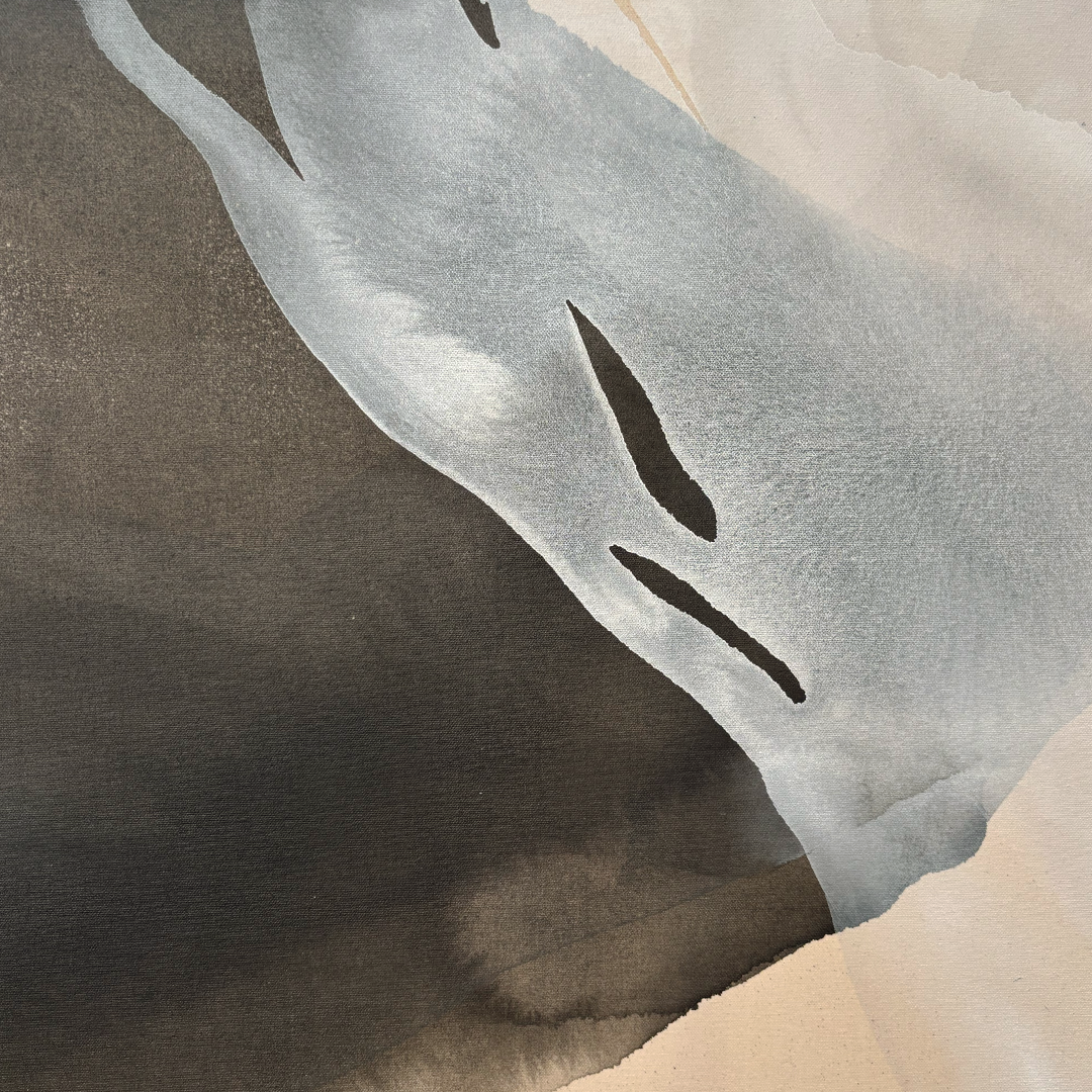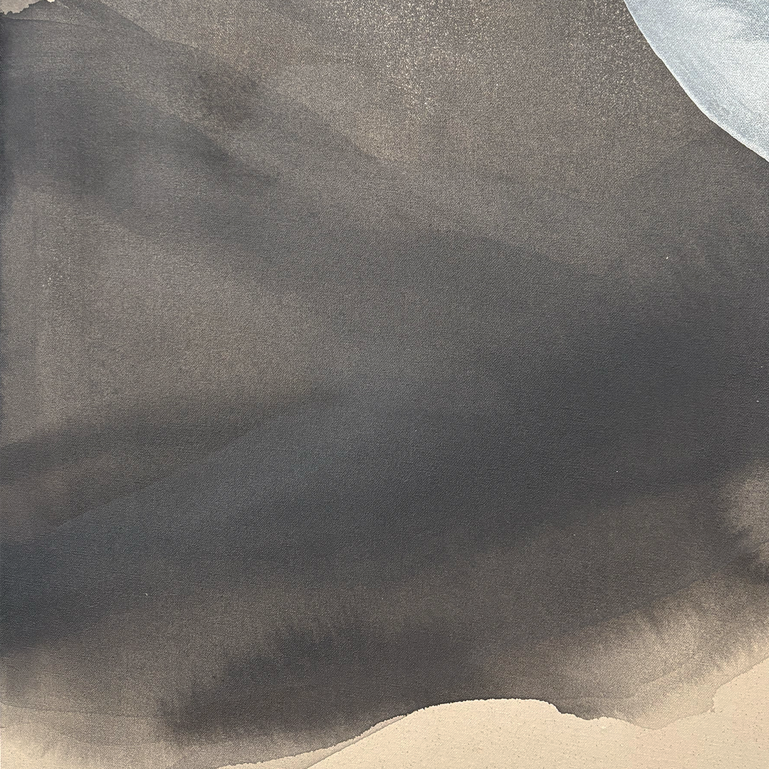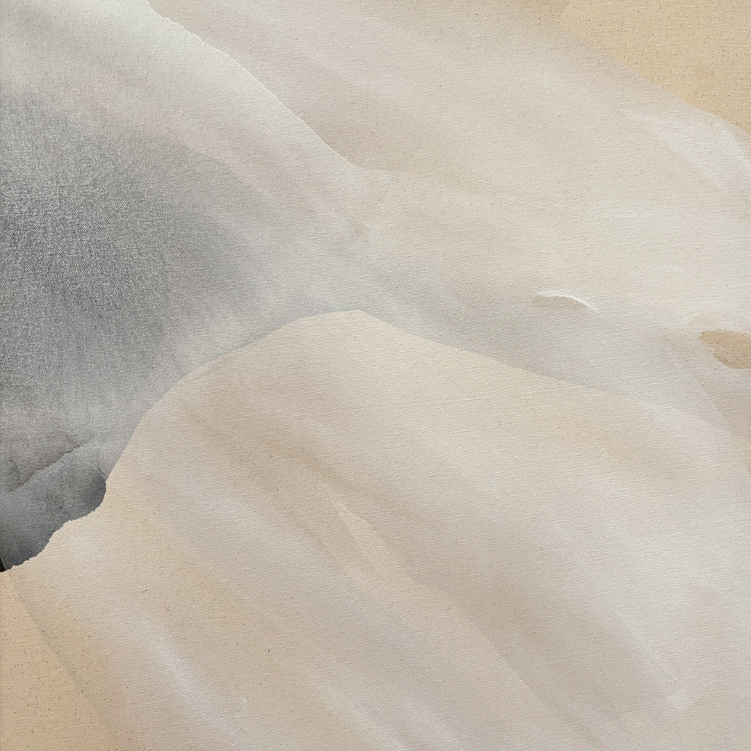 Meghana’s artworks draw you into an abstract wilderness of colour, sensation, texture and light. Her abstract acrylics map luminous terrains that are a transportive meditative experience – a deep breath that evokes peace, calm, and solace. ... The organic, amorphous, muslin-thin mists and shapes that float across her expansive canvases are achieved by pouring watered-down paint onto the canvas, letting the paint take its own form. The artist then nudges the paint in different directions, repeating the process in layers to create enigmatic, intuitive pieces. On her process, she says, “After all – in life, we only have limited control. For the rest, we need to let things take its course.” Meghana’s earthy, ethereal palettes full of browns, blacks, white and blues resemble elemental natural forces, contributing to this sense of comfort, inner peace, and the idea of giving way, and letting the world take over.