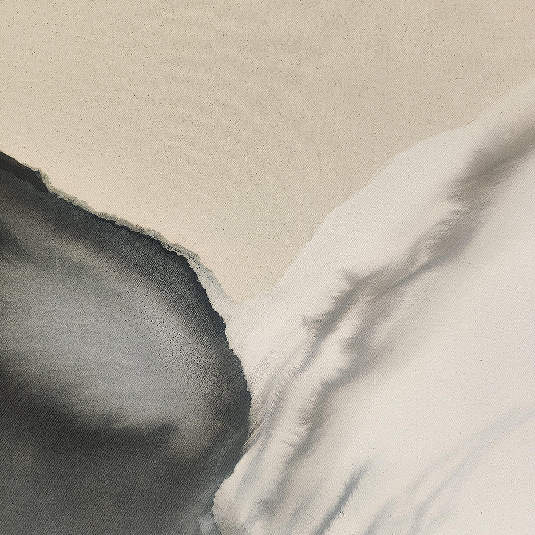 Meghana’s artworks draw you into an abstract wilderness of colour, sensation, texture and light. Her abstract acrylics map luminous terrains that are a transportive meditative experience – a deep breath that evokes peace, calm, and solace. ... The organic, amorphous, muslin-thin mists and shapes that float across her expansive canvases are achieved by pouring watered-down paint onto the canvas, letting the paint take its own form. The artist then nudges the paint in different directions, repeating the process in layers to create enigmatic, intuitive pieces. On her process, she says, “After all – in life, we only have limited control. For the rest, we need to let things take its course.” Meghana’s earthy, ethereal palettes full of browns, blacks, white and blues resemble elemental natural forces, contributing to this sense of comfort, inner peace, and the idea of giving way, and letting the world take over.