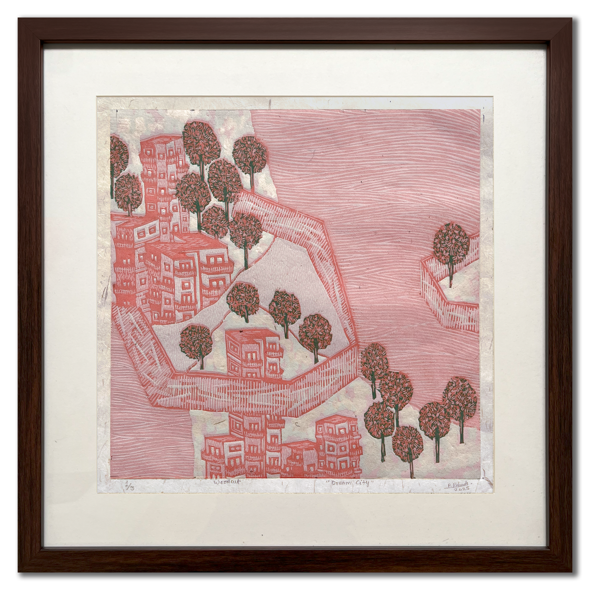 Payal Rokade, is an up and coming artist from Umred, a small town in Maharashtra. Her close relationship with nature is the foundation of her work, reflecting the harmony, complexity, and the fragility of this connection. As she moved to a large city, she noticed that the calm of nature was replaced by the relentless rush of urban life—the constant hum of cars, hurried footsteps, and a silence where nature once thrived. This shift had a deep impact that began to surface in her dreams. One recurring nightmare featured a world where nature had vanished, leaving only towering buildings behind—a chilling image that resonated with the irregular climate patterns we now witness. This dream became the inspiration for this series, Dream City....Through her work, Payal continues to explore the complex relationship between nature and humanity. As we move forward in our pursuit of progress, we often forget that nature, too, is unstoppable. There is an urgent need to preserve the delicate balance between human advancement and the natural world. Payal strives to show the beauty and importance of this relationship, and the consequences if it is neglected.