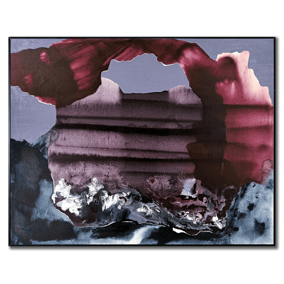 As an artist, Meenal Singh operates from a point of deep engagement with her process and medium, which is primarily oil-on-canvas. Working not with brushstrokes or palette knives, but the unique flow and behaviour of the pigments themselves, she transforms liquid colours into vast swathes of form and space, emulating imaginary landscapes and abstracted topographies of the mind. Over the years, she has built a repertoire of expansive formats; paintings that play with intense colour, texture, transparency, and the visual effects of light and motion. From her early work that presented busy compositions and densely layered surfaces, Meenal’s artistic language has evolved into a distinctly calm and contemplative space, alongside her confidence and mastery in the medium.
